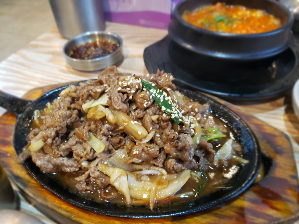 True enough, the side dishes lived up to the hype.Seafood pancake. This was done well and the portion was generous. Pork and kimchi stew. Had a good amount of pork, kimchi and rice cake. Was just a tad bit too sour for my liking but that’s just my preference.Stir fried marinated beef. This was delicious and my favourite one among the dishes we tried.