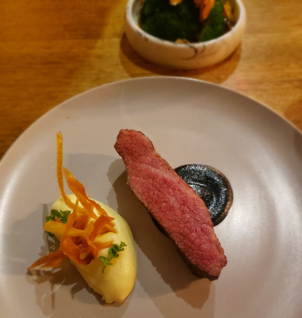 Campfire crab (handpicked spanner crab)Farmer Doug’s Potato GnocchiBlack Market Angus Rump Cap with Farmer Doug’s mash served with a side of local broccoli, burnt butter, lemon and almondSeasonal granita: mandarin, citrus sherbert